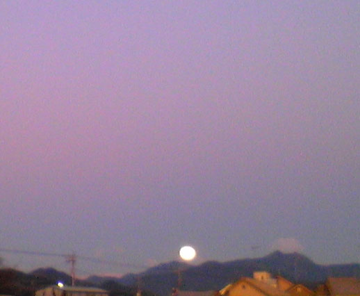 もう一枚はその真後ろ、山に沈んでいく月を写した物。