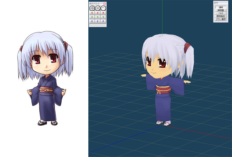 どうも慣れないMetasequoiaと参考書片手に、見よう見まねで悪戦苦闘しながらも看板娘のモデルを製作していました。